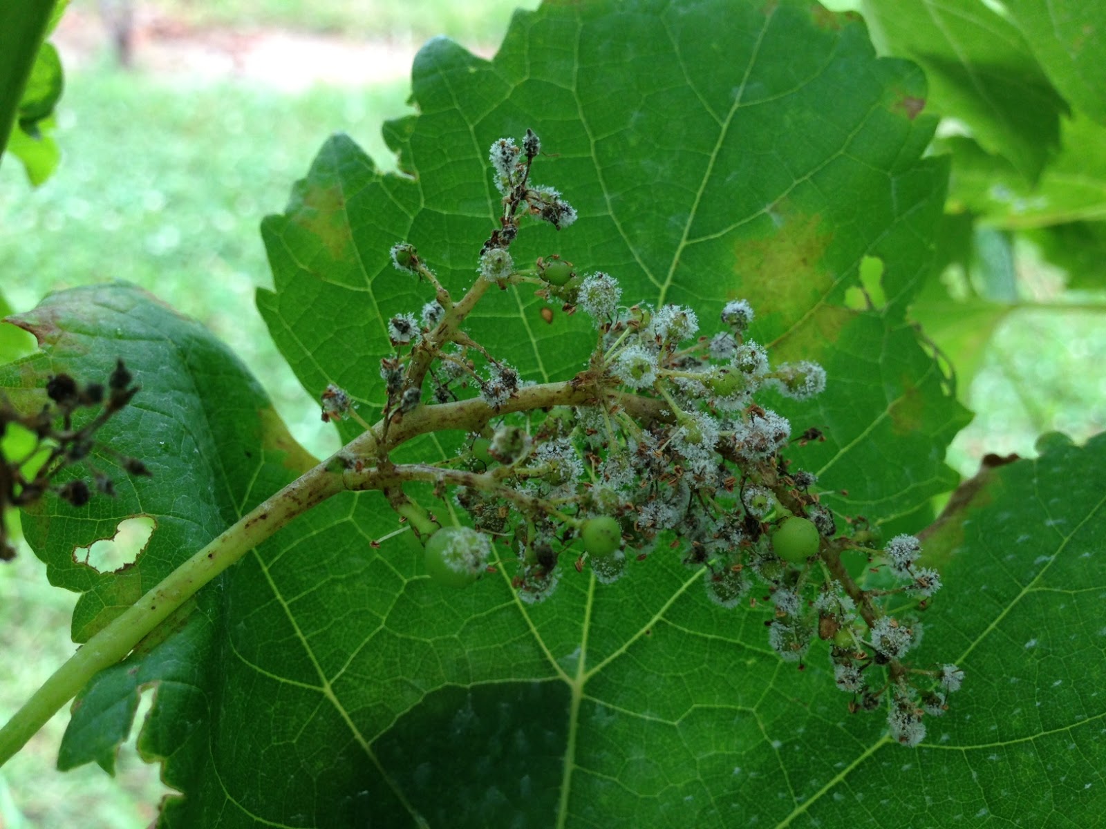 Once again, the current condition favors development of downy mildew and black rot. Please do not let something like the picture below happen to you! (Downy mildew on a cluster, taken from our downy mildew trial.)