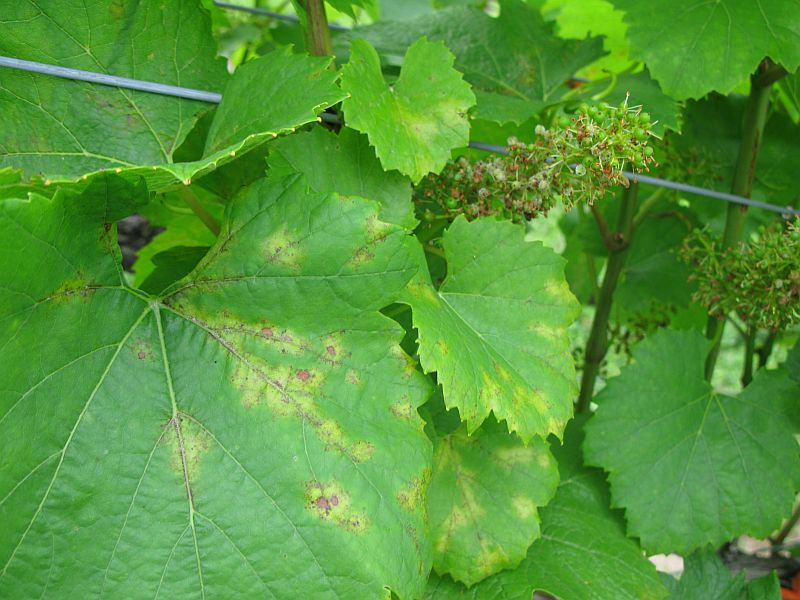 We had a potential downy mildew infection period back in May 3rd. This is about the time you will start to see the symptom development (click the picture to see a larger image). Please check your vines closely and adjust your spray schedule if needed.