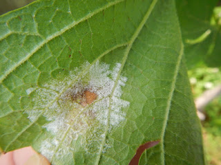 Of course, once I mentioned the lack of rainfall, we (i.e., northern VA) were hit by a series of rain. To make things more complicated, we had at least three consecutive nights of warm and humid (RH > 90%) condition prior to the rains. Humid nights encourage downy mildew pathogen to produce spores, and rains will splash spores to healthy tissues. Thus, the risk of downy mildew during recent rain events was very high. (Note: Central VA also had two humid nights in 7/5-7/6 at the Charlottesville airport, but the chance of rain is not high until this Thursday.)