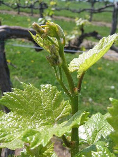 As of noon yesterday (4/28/09), our Chardonnay was 100% bud break with more than 50% of them with lower two leaves unfolded. Some were as advanced as the picture. Cabernet sauvignon varied with vines, but some were close to 70% bud break with a few buds with lower leaves unfolded, and others were about 30%.