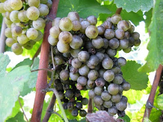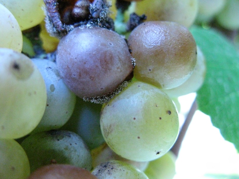 Also, if you take a look at the first picture of Botrytis, you will notice that the berries at the top side of the picture was damaged by either bird or bees. It is not uncommon to see the start of Botrytis on the damaged berries since it can grow on higher sugar contents than many other pathogens.